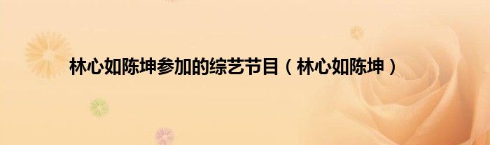 以上就是【林心如陈坤参加的综艺节目,林心如陈坤】相关内容。