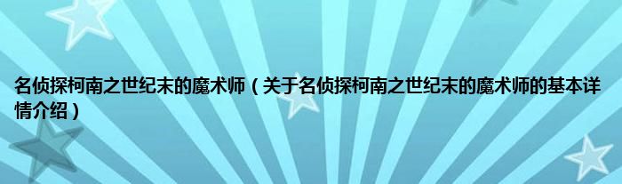 本文关于名侦探柯南之世纪末的魔术师的基本详情介绍就讲解完毕,希望对大家有所帮助。