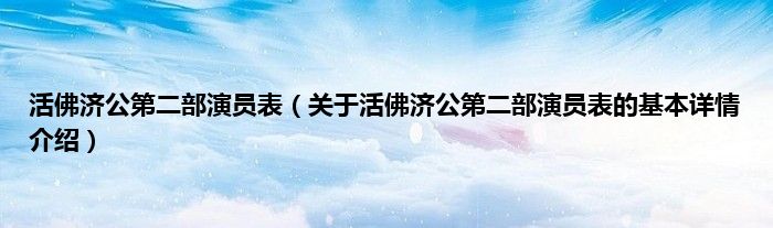 本文关于活佛济公第二部演员表的基本详情介绍就讲解完毕,希望对大家有所帮助。