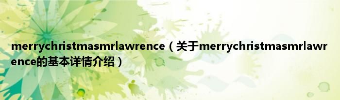 merrychristmasmrlawrence(关于merrychristmasmrlawrence的基本详情介绍)