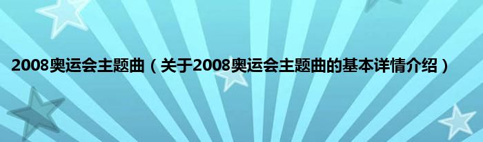 2008奥运会主题曲(关于2008奥运会主题曲的基本详情介绍)