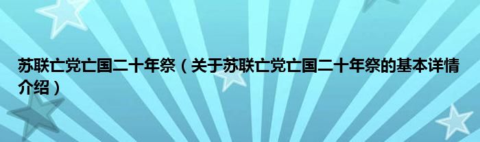 苏联亡党亡国二十年祭(关于苏联亡党亡国二十年祭的基本详情介绍)