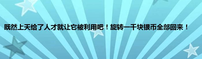 大家好,小问来为大家解答以上问题。既然上天给了人才就让它被利用吧!旋转一千块银币全部回来!这个很多人还不知道,现在让我们一起来看看吧!