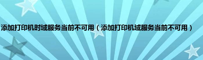 大家好,小问来为大家解答以上问题。添加打印机时域服务当前不可用,添加打印机域服务当前不可用这个很多人还不知道,现在让我们一起来看看吧!