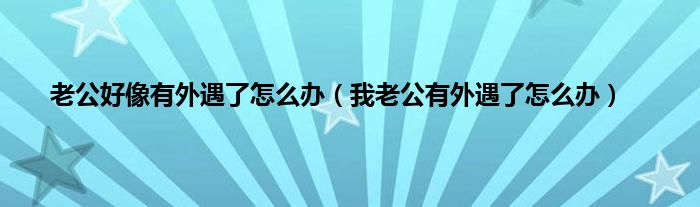 大家好,小问来为大家解答以上问题。老公好像有外遇了怎么办,我老公有外遇了怎么办这个很多人还不知道,现在让我们一起来看看吧!