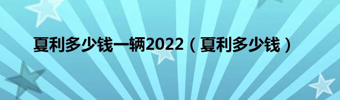 大家好,小问来为大家解答以上问题。夏利多少钱一辆2022,夏利多少钱这个很多人还不知道,现在让我们一起来看看吧!