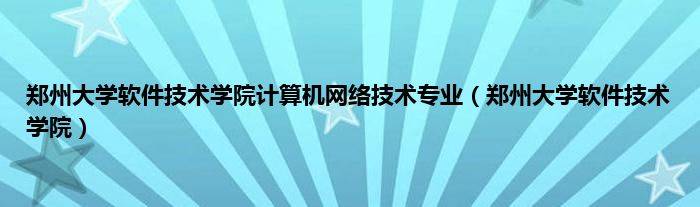 大家好,小问来为大家解答以上问题。郑州大学软件技术学院计算机网络技术专业,郑州大学软件技术学院这个很多人还不知道,现在让我们一起来看看吧!