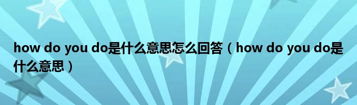 以上就是【how do you do是什么意思怎么回答,how do you do是什么意思】相关内容。