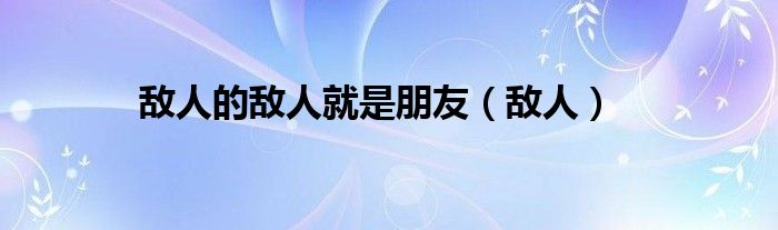 大家好,小问来为大家解答以上问题。敌人的敌人就是朋友,敌人这个很多人还不知道,现在让我们一起来看看吧!