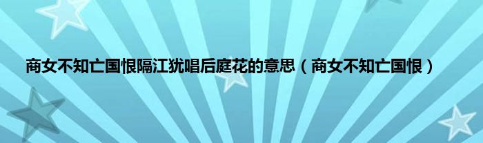 以上就是【商女不知亡国恨隔江犹唱后庭花的意思,商女不知亡国恨】相关内容。