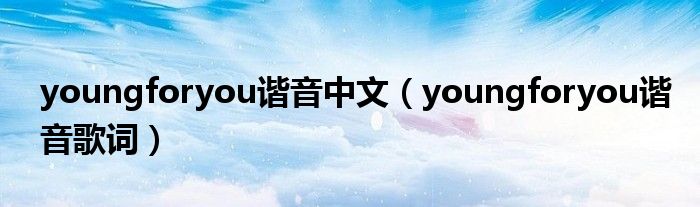 大家好,小问来为大家解答以上问题。youngforyou谐音中文,youngforyou谐音歌词这个很多人还不知道,现在让我们一起来看看吧!