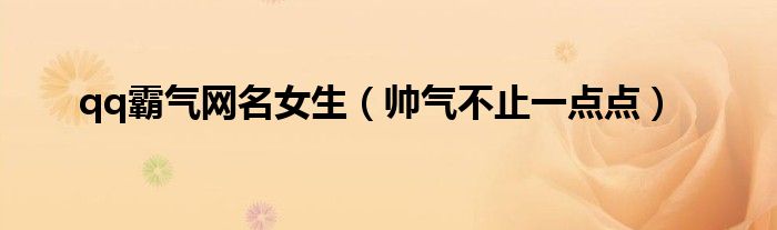 大家好,综合小编来为大家讲解下。qq霸气网名女生,帅气不止一点点这个很多人还不知道,现在让我们一起来看看吧!