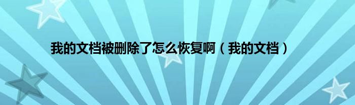 以上就是【我的文档被删除了怎么恢复啊,我的文档】相关内容。