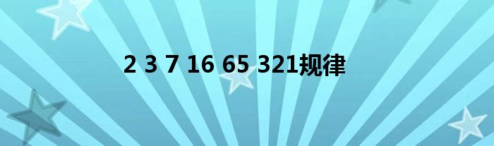 大家好,小问来为大家解答以上问题。2 3 7 16 65 321规律这个很多人还不知道,现在让我们一起来看看吧!