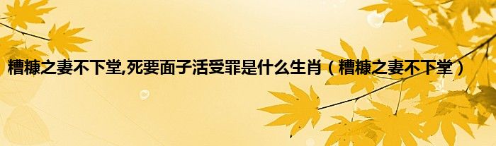 以上就是【糟糠之妻不下堂,死要面子活受罪是什么生肖,糟糠之妻不下堂】相关内容。