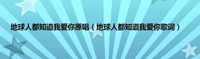 大家好,小问来为大家解答以上问题。地球人都知道我爱你原唱,地球人都知道我爱你歌词这个很多人还不知道,现在让我们一起来看看吧!
