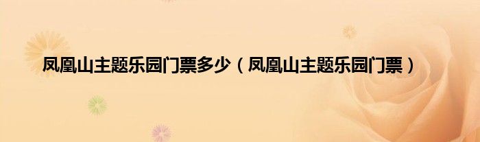 以上就是【凤凰山主题乐园门票多少,凤凰山主题乐园门票】相关内容。