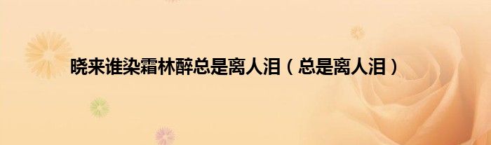 大家好,小问来为大家解答以上问题。晓来谁染霜林醉总是离人泪,总是离人泪这个很多人还不知道,现在让我们一起来看看吧!