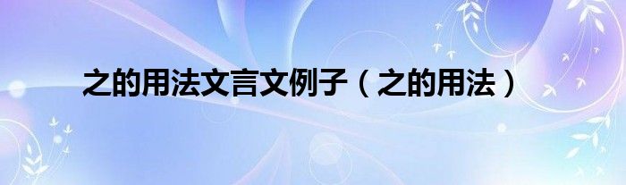 以上就是【之的用法文言文例子,之的用法】相关内容。
