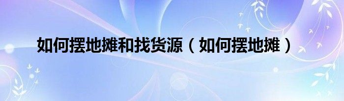 以上就是【如何摆地摊和找货源,如何摆地摊】相关内容。