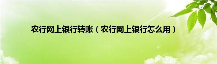 以上就是【农行网上银行转账,农行网上银行怎么用】相关内容。
