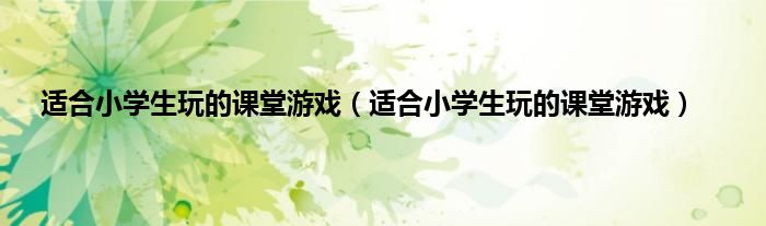 大家好,小问来为大家解答以上问题。适合小学生玩的课堂游戏,适合小学生玩的课堂游戏这个很多人还不知道,现在让我们一起来看看吧!