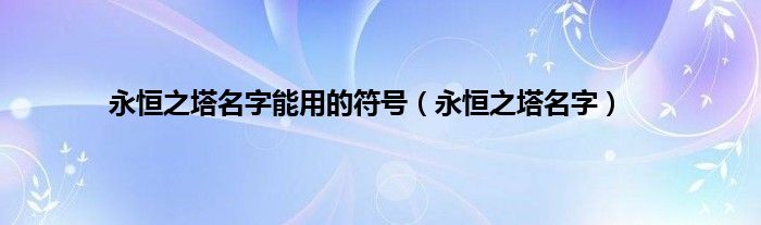 以上就是【永恒之塔名字能用的符号,永恒之塔名字】相关内容。