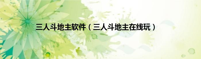 大家好,小问来为大家解答以上问题。三人斗地主软件,三人斗地主在线玩这个很多人还不知道,现在让我们一起来看看吧!