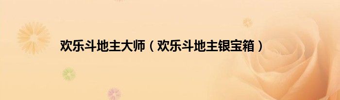 大家好,小问来为大家解答以上问题。欢乐斗地主大师,欢乐斗地主银宝箱这个很多人还不知道,现在让我们一起来看看吧!
