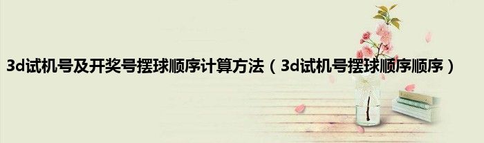 以上就是【3d试机号及开奖号摆球顺序计算方法,3d试机号摆球顺序顺序】相关内容。