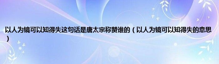 以上就是【以人为镜可以知得失这句话是唐太宗称赞谁的,以人为镜可以知得失的意思】相关内容。