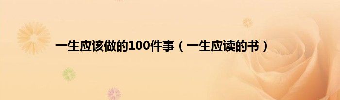 大家好,小问来为大家解答以上问题。一生应该做的100件事,一生应读的书这个很多人还不知道,现在让我们一起来看看吧!