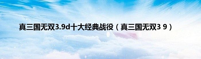 大家好,小问来为大家解答以上问题。真三国无双3.9d十大经典战役,真三国无双3 9这个很多人还不知道,现在让我们一起来看看吧!