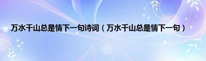 以上就是【万水千山总是情下一句诗词,万水千山总是情下一句】相关内容。