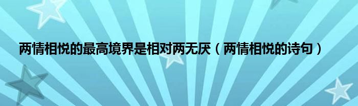大家好,小问来为大家解答以上问题。两情相悦的最高境界是相对两无厌,两情相悦的诗句这个很多人还不知道,现在让我们一起来看看吧!