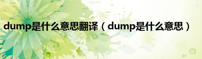 大家好,小问来为大家解答以上问题。dump是什么意思翻译,dump是什么意思这个很多人还不知道,现在让我们一起来看看吧!