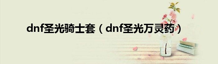 大家好,小问来为大家解答以上问题。dnf圣光骑士套,dnf圣光万灵药这个很多人还不知道,现在让我们一起来看看吧!