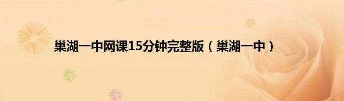 大家好,小问来为大家解答以上问题。巢湖一中网课15分钟完整版,巢湖一中这个很多人还不知道,现在让我们一起来看看吧!