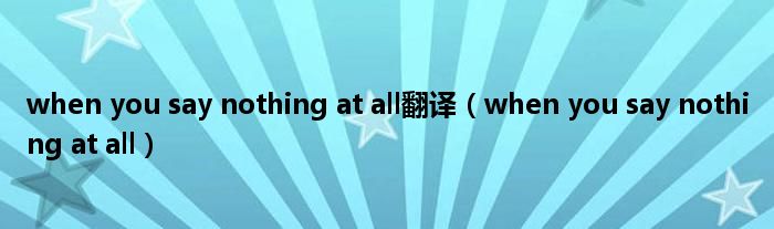 大家好,小问来为大家解答以上问题。when you say nothing at all翻译,when you say nothing at all这个很多人还不知道,现在让我们一起来看看吧!