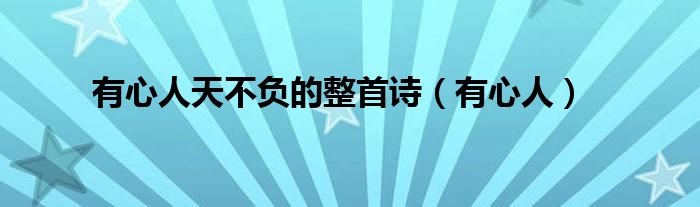 大家好,小问来为大家解答以上问题。有心人天不负的整首诗,有心人这个很多人还不知道,现在让我们一起来看看吧!