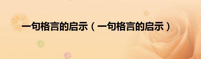 大家好,小问来为大家解答以上问题。一句格言的启示,一句格言的启示这个很多人还不知道,现在让我们一起来看看吧!