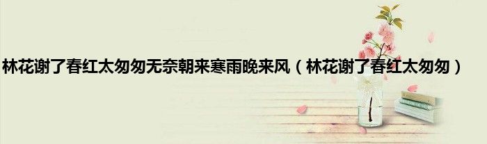 大家好,小问来为大家解答以上问题。林花谢了春红太匆匆无奈朝来寒雨晚来风,林花谢了春红太匆匆这个很多人还不知道,现在让我们一起来看看吧!