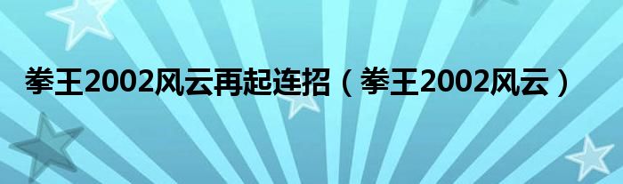 大家好,小问来为大家解答以上问题。拳王2002风云再起连招,拳王2002风云这个很多人还不知道,现在让我们一起来看看吧!