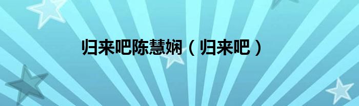 大家好,小问来为大家解答以上问题。归来吧陈慧娴,归来吧这个很多人还不知道,现在让我们一起来看看吧!