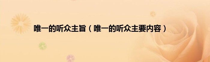 大家好,小问来为大家解答以上问题。唯一的听众主旨,唯一的听众主要内容这个很多人还不知道,现在让我们一起来看看吧!