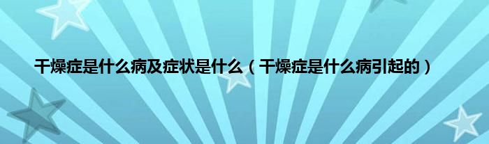以上就是【干燥症是什么病及症状是什么,干燥症是什么病引起的】相关内容。