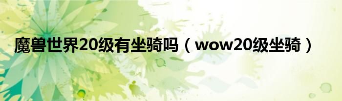 以上就是【魔兽世界20级有坐骑吗,wow20级坐骑】相关内容。