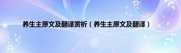 大家好,小问来为大家解答以上问题。养生主原文及翻译赏析,养生主原文及翻译这个很多人还不知道,现在让我们一起来看看吧!