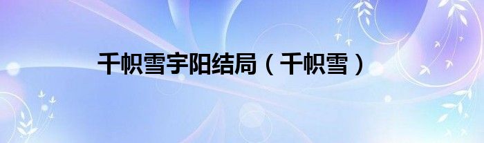 大家好,小问来为大家解答以上问题。千帜雪宇阳结局,千帜雪这个很多人还不知道,现在让我们一起来看看吧!