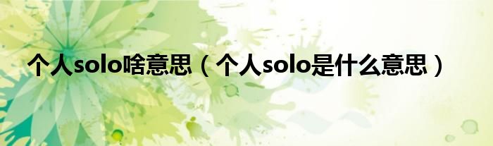 以上就是【个人solo啥意思,个人solo是什么意思】相关内容。
